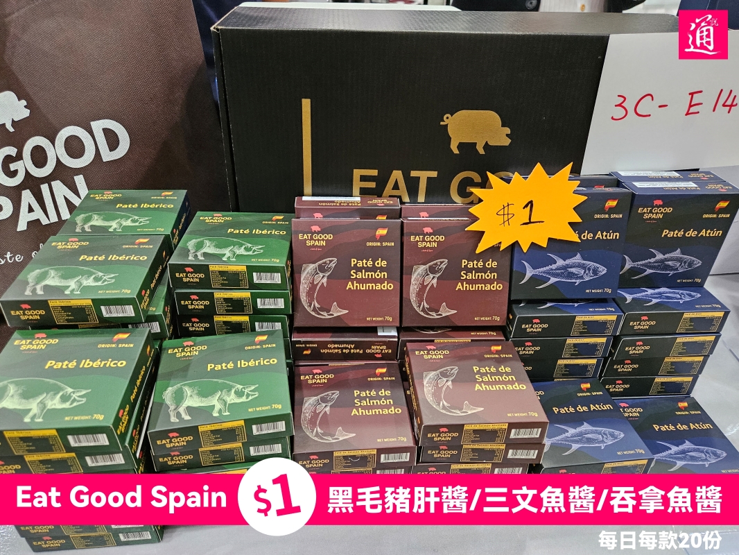 Eat Good Spain帶來1元特價黑毛豬肝醬、三文魚醬、吞拿魚醬。