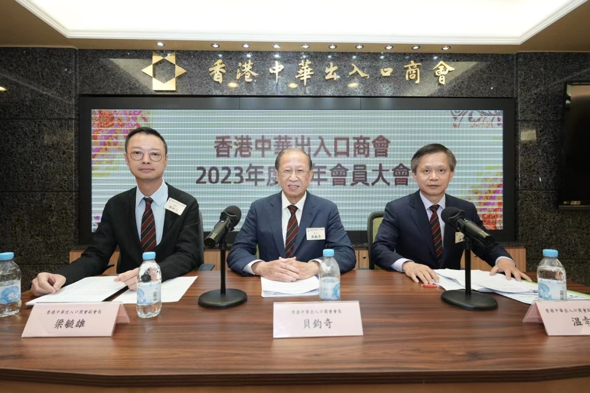 香港新聞網8月15日電 香港中華出入口商會(中出商會)2023年會員大會14日在該會會所舉行。會員大會由副會長兼秘書長温幸平主持,貝鈞奇會長代表會董會發表會務報告,梁毓雄副會長作財務報告,立法會議員(進出口界)黃英豪等出席。 貝鈞奇會長表示,中出商會要促進香港工商界特別是進出口界融入國家發展大局、深化與海內外伙伴聯繫交流,擔當“內聯外通”貿易橋樑,努力參與激發香港“興”的動能,為發展經濟、改善香港民生貢獻-份中出商會的力量!