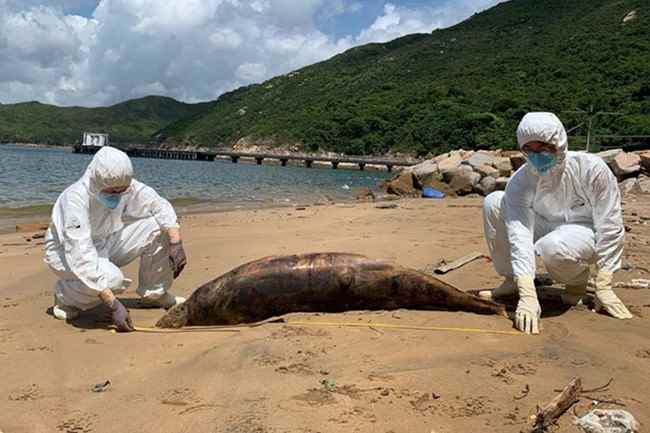 江豚身長172厘米,已經成年。8月15日,香港海洋公園保育基金將江豚帶回海洋公園作詳細解剖分析,並呼籲公眾若發現懷疑鯨豚、鯊魚及鯆魚擱淺個案,請及時告知,並提供發現擱淺的時間、地點、相片,讓行動組能盡快到場跟進。