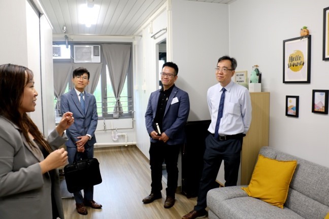 一衆嘉賓參觀博愛江夏圍村示範單位。 “都大家長教育計劃”現時主力推廣十數個“自在人生自學計劃”家長教育系列課程,以及在8月同時推出兩個面向不同對象的系列講座,包括由一系列重量級嘉賓主講,面向公衆的“與名人對話親職教育”系列講座,有關講座將安排稍後於明珠台“知識新天地”節目中播放;以及是次在過渡性房屋舉辦的“親子教育多面睇”系列講座。