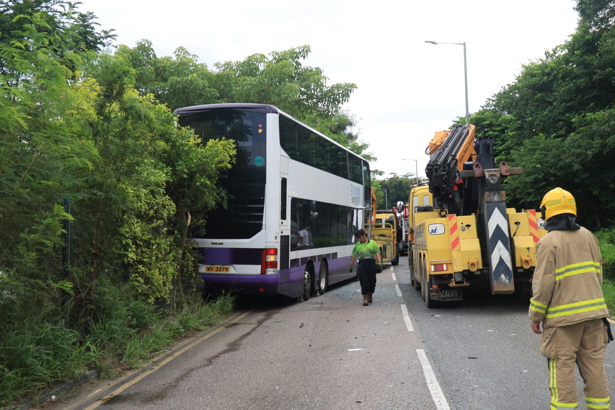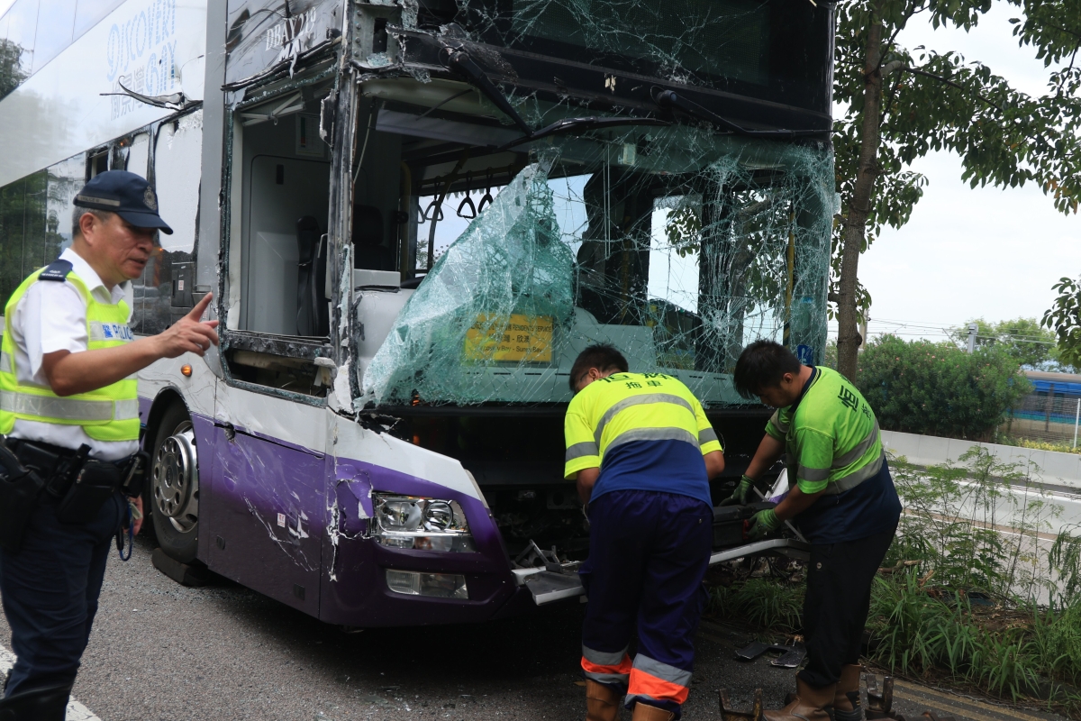 香港新聞網8月31日電(記者許其皓)8月31日早上,香港東湧翔東路一輛校巴與一輛雙層大巴相撞,兩車其後衝入路邊草叢,大巴車頭和校巴車身嚴重損毀,意外造成至少造成39人受傷,其中3人傷勢嚴重。包括保母車司機及2名學童,其餘傷者大部分輕傷。翔東路來回方向近深水角變電站全線封閉,北大嶼山公路往東涌方向近深水角變電站的慢線現已解封。 警務處新界南總區調查及支援組警司徐鎮東指,初步理解或現場環境看到,肇事時應該兩輛車在同一行車線,相信是保母車偏離原本往愉景灣方向行車線,導致今次意外。