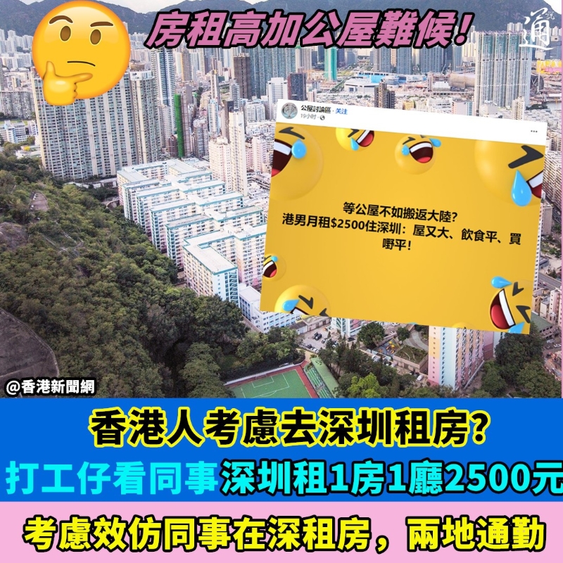 香港新聞網9月5日電 越來越多港人選擇香港工作,深圳租房? 香港租房成本高,廉租房“公屋”輪候時間亦動輒5年。有香港打工仔近日就等不及了,於社交平台臉書的“公屋討論區”發文,稱考慮效仿同事,在深圳租房,開啟兩地通勤的生活。 該打工仔自曝已申請香港廉租房,但“上樓”遙遙無期,發現有同事在深圳北租房住,一室一廳的單位月租只需約2500元(港幣,下同)。交通方面,同事每天搭乘高鐵於尖沙咀和深圳之間往返,車程加過關僅需半小時,每月車費約3600元。也就是說,每月租金及車費合計約6100元。 “(深圳)屋又大、吃東西便宜、買東西便宜。”該打工仔坦言心動了,也想搬到深圳居住。