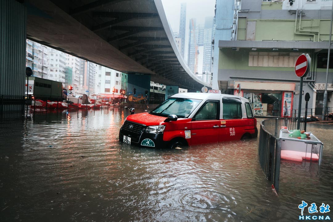 9月8日,香港土瓜灣出現水浸。香港遭遇自有紀錄以來最大暴雨,天文台9月7日晚11時05分發出今年首個黑色暴雨警告信號,至9月8日早仍然維持。(香港中通社記者 許其皓攝)