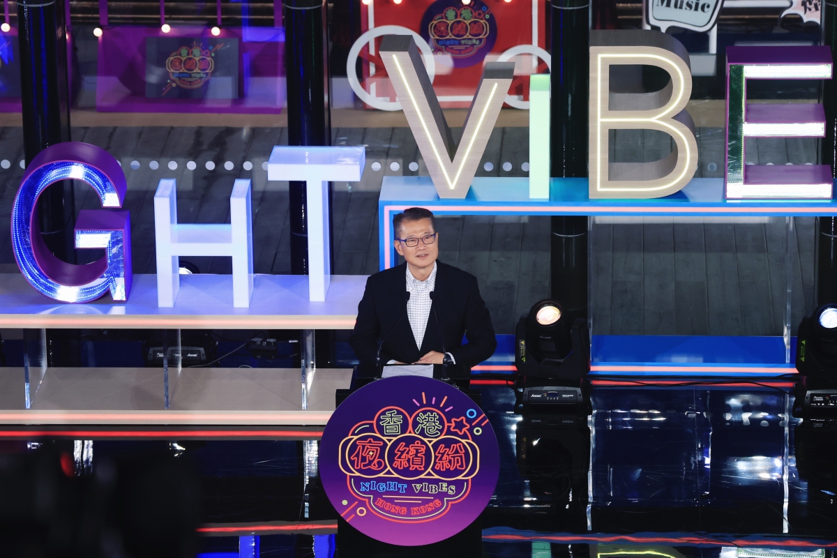 香港特區政府財政司司長陳茂波在“香港夜繽紛”啟動禮上致辭