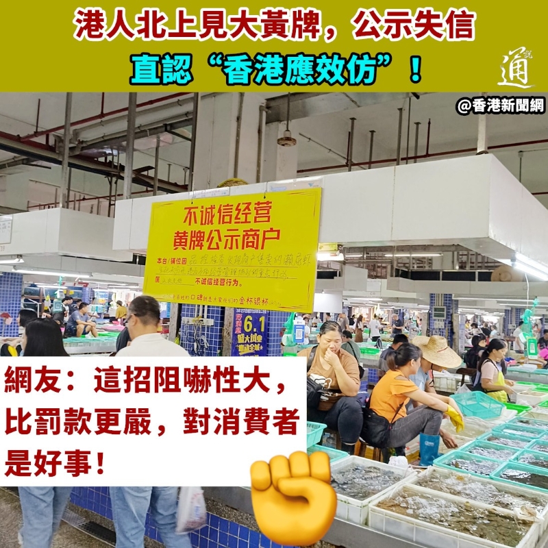 (圖源:今日斗門) 翻查資料,黃牌公示亦並非珠海“創新”。放眼全國,深圳、濟南、南寧、廈門等均有類似舉措。 不過有關做法在香港鮮少見到,因此,該帖文一經發出,即引發大批網友熱議。 “我喜歡這個做法。”在評論區內,不少香港網友紛紛留言點贊,指“這招阻嚇性大”,“比罰款更嚴厲”,對消費者而言是好事。同時,他們亦肯定內地管治越來越人性化。 亦有一些港人聯想起近期香港藥店涉不良銷售手法的醜聞,認為香港可以效仿,“如果香港有這招,10間藥房可能有9間被紅牌(罰)出場”。