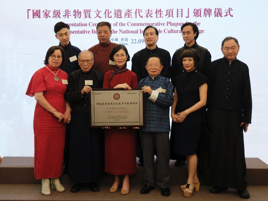 香港新聞網9月22日電(記者 曹文毓)香港兩個非物質文化遺產(非遺)項目——香港天后誕和香港中式長衫製作技藝,獲列入國務院於2021年公布的第五批《國家級非物質文化遺產代表性項目名錄》,9月22日,“國家級非物質文化遺產代表性項目”頒牌儀式在香港孫中山紀念館舉行。 香港天后誕和香港中式長衫製作技藝,在2021年列入國務院公布的第五批《國家級非物質文化遺產代表性項目名錄》。天后信仰在香港有著悠久的歷史。每年香港各區會舉行不同的賀誕活動,一些地方團體會籌辦粵劇神功戲、抽花炮等活動以酬謝神恩,甚至舉行海上或陸上巡遊;香港中式長衫則在20世紀初日漸流行。二戰後,香港長衫的製作工藝融合了西式裁剪方法,女裝長衫現已成為重要場合的優雅衣著,男裝長衫是出席隆重場合的正裝。