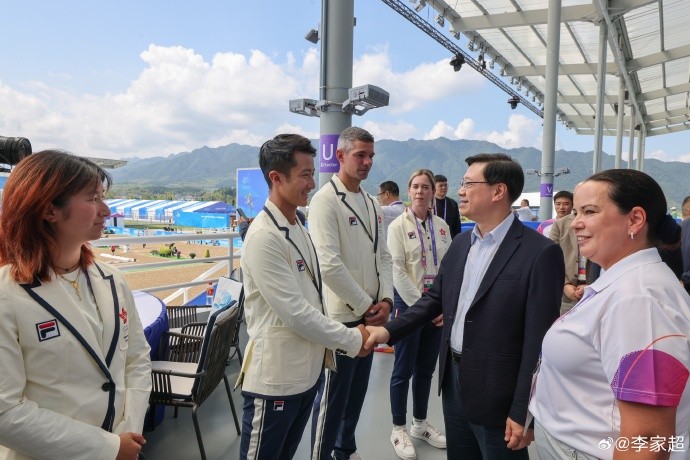 (圖源:李家超微博) 他指,在杭州市桐廬縣舉辦的馬術項目,香港的賽馬機構專家和技術人員自籌備階段以來一直積極參與並提供全方位支援。他今早在桐廬馬術中心與他們見面,了解人員的工作崗位和運作情況,並感謝他們的努力和貢獻。 香港在馬術運動上具獨特優勢,賽馬機構在馬匹管理及場地建設等各方面都有豐富經驗。在此次亞運會馬術項目中,香港賽馬會專家被指定為賽事總指揮部馬術項目管理指揮中心專家顧問,為亞運會成功舉辦發揮重要力量。今年6月,香港賽馬會更與杭州政府簽署發展馬匹體育運動合作備忘錄,全力支持杭州市發展全國性馬匹體育運動及相關產業,使香港在參與推動國家整體馬運動及產業中佔一席位。 展望2025年第15屆全國運動會,李家超稱,此次全國運動會將歷史性由香港、廣東及澳門三地聯合承辦,足見國家對香港的信任。他指,這是香港展現實力和活力的良機,特區政府會帶領社會各界積極籌備,貢獻國家蓬勃體育發展,向世界講好中國體育故事。(完) 【編輯:刘春】