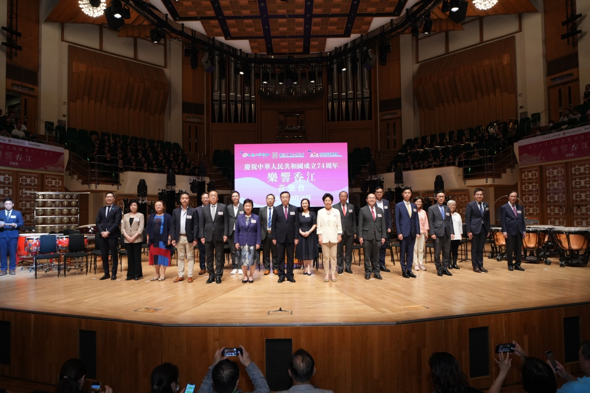 香港新聞網9月25日電 為慶祝中華人民共和國成立74周年華誕,九龍社團聯會、香港中國企業協會合辦,油尖旺民政事務處贊助“慶祝中華人民共和國成立74周年‧樂響香江音樂會”,於9月25日晚假香港文化中心圓滿舉行。中聯辦副主任何靖、民政事務總署副署長易志宏、香港中國企業協會總裁于曉先生、中聯辦九龍工作部副部長李文彬、九龍社團聯會首席會長連浩民、會長王惠貞、理事長徐莉、監事長簡志豪等蒞臨活動,並且參與典禮儀式,與市民歡聚一堂,共同祝賀中華人民共和國成立74周年的非凡時刻。
