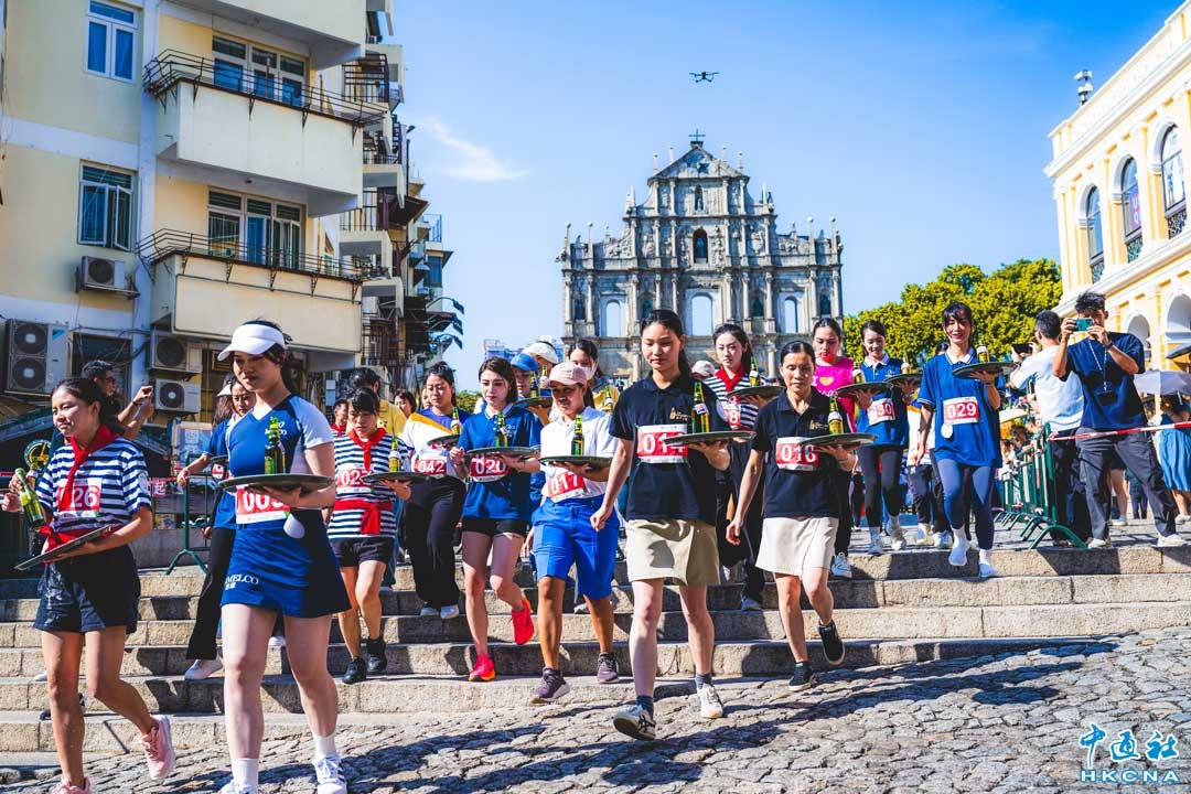 9月27日,參加者在共慶世界旅遊日“澳門有禮‧托盤比賽”上。每年9月27日為世界旅遊日。澳門旅遊局秉持傳統,於當天早上歡迎幸運旅客,下午舉辦“澳門有禮‧托盤比賽”,現場氣氛熱鬧,共同慶祝一年一度的全球性旅遊盛事。 香港中通社圖片