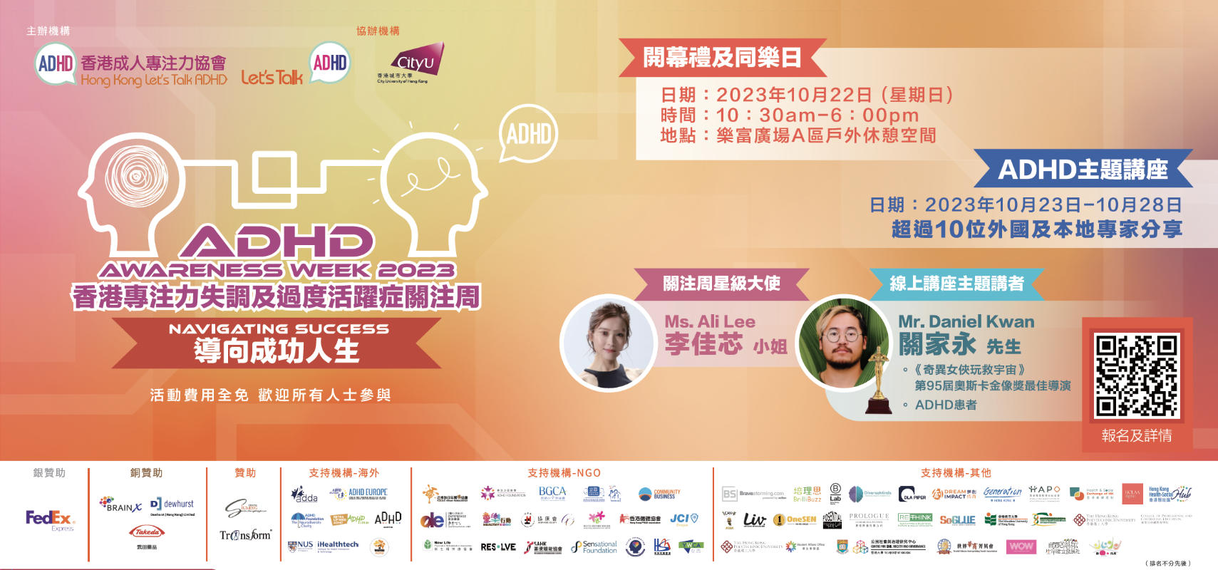 “香港專注力失調及過度活躍症關注周2023”本月22日開幕。 同為ADHD患者的香港成人專注力協會創辦人Amanda發現,很多成人患者不自覺自己患ADHD,即使社交、工作及兩性關係大受影響,亦不會主動求醫。Amanda自身經歷過ADHD與抑鬱症後,決定成立協會幫助一眾同路人,亦透過各種活動和講座,提升企業和公眾對ADHD的了解。每年10月,協會均會舉辦ADHD關注周,Amanda表示:“今年香港專注力失調及過度活躍症關注周主題為‘導向成功人生’,將於10月22日開幕,在樂富廣場舉辦同樂日,一連串的活動,包括別開生面的專注力狂奔體驗,讓參加者利用腦電波控制機械蜘蛛,測試大人小朋友的專注力,同時體驗ADHD患者專注困難。今年關注周更有幸邀請到憑藉《奇異女俠玩救宇宙》奪得第95屆奧斯卡金像獎最佳導演、同為ADHD患者的關家永先生(Daniel),擔任線上講座主題講者,希望藉著他的分享,能喚起更多人關注。” 雖然Daniel身處外國,但仍熱心參與是次關注周。Daniel憶述:“我在撰寫《奇異女俠玩救宇宙》時,確診患有ADHD。確診ADHD並不代表個人職涯甚或世界末日。事實上,這可能是發生在我身上的最好的事情之一,有助我更了解我的大腦是如何運作,讓我更好地建立一個系統和支援社群,活出最好的自己。”Daniel期望透過分享他的旅程,能激勵和引導那些被診斷出患有或疑似患有ADHD的人,幫助他們導向成功人生。 關注周星級大使藝人李佳芯將會出席關注周開幕禮,她呼籲大眾一同報名參與:“這次關注周請來多位外國及本地ADHD專家分享,費用全免。” “香港專注力失調及過度活躍症關注周2023”詳情 開幕禮及同樂日 日期:10月22日 時間:上午10時30分至下午6時 地點:樂富廣場A區戶外休憩空間 ADHD主題講座 日期:10月23日至10月28日 超過10位外國及本地專家分享,詳情可瀏覽:www.letstalkadhd.hk/2023adhdawarenessweek 【編輯:黃璇】