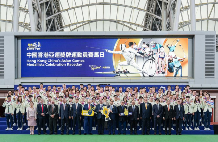 香港新聞網10月22日電 (記者 陳卓儀)中國香港代表團在杭州亞運獲得53面獎牌的成績。香港賽馬會22日舉行“中國香港亞運獎牌運動員賽馬日”,同場進行“賽馬會優秀運動員獎勵計劃”支票頒授儀式,發放3250萬港元獎金表彰,表彰來自18個體育項目逾80名得獎運動員。