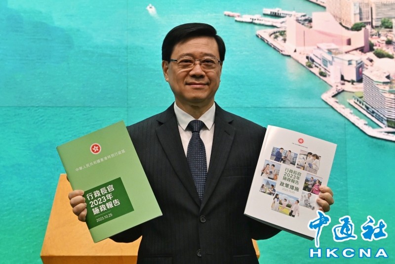 香港新聞網10月25日電 香港特區行政長官李家超25日發表任內第二份施政報告,預告今次主題是“拼經濟謀發展 惠民生添幸福”,沿用綠色封面是代表希望、生命力及和諧。