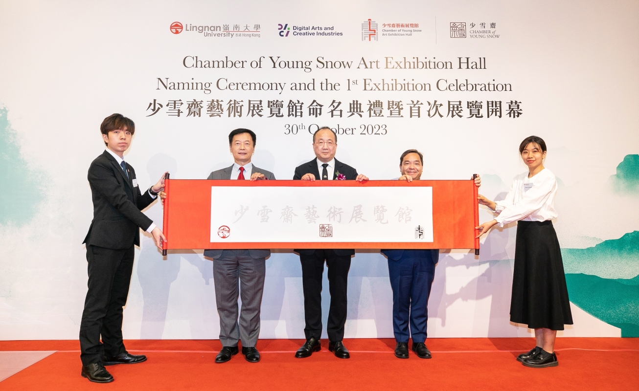 香港新聞網10月31日電 香港嶺南大學(嶺大)10月30日在校園舉辦“少雪齋藝術展覽館”命名典禮及呈獻首個以“感物”為主題的展覽。這項為期五年的文化項目由嶺大數碼藝術及創意產業系及少雪齋支持,並獲少雪齋慷慨捐贈創館及營運費用,成立“少雪齋藝術展覽館”,與公眾分享其惠借的珍貴藏品。 是次展覽以“感物”為主題,展出約30件來自少雪齋、涵蓋宋朝至二十世紀期間的中國繪畫和陶瓷等私人收藏及外借珍藏,展示中國古代表達和累積的意義和情感,更為當下社會及生活帶來啟示及動力,突顯不同時期中國藝術家的哲學、價值觀和世界觀。 在三十多件展品中,最引人注目的包括彩繪神仙圖壁畫局部(圖一)。該壁畫使用多色的顏料繪製,詳細部分以鍍金及浮雕展示。另一件重點展品包括近現代廣東畫壇名家李研山於1939年的作品《曲江池館圖》(圖二),該作品透過清初正統派畫家臨摹元代山水畫傳統,景觀取自嶺南園林畫之神韻,曾在北京、台灣及香港藝術館等多地展出。