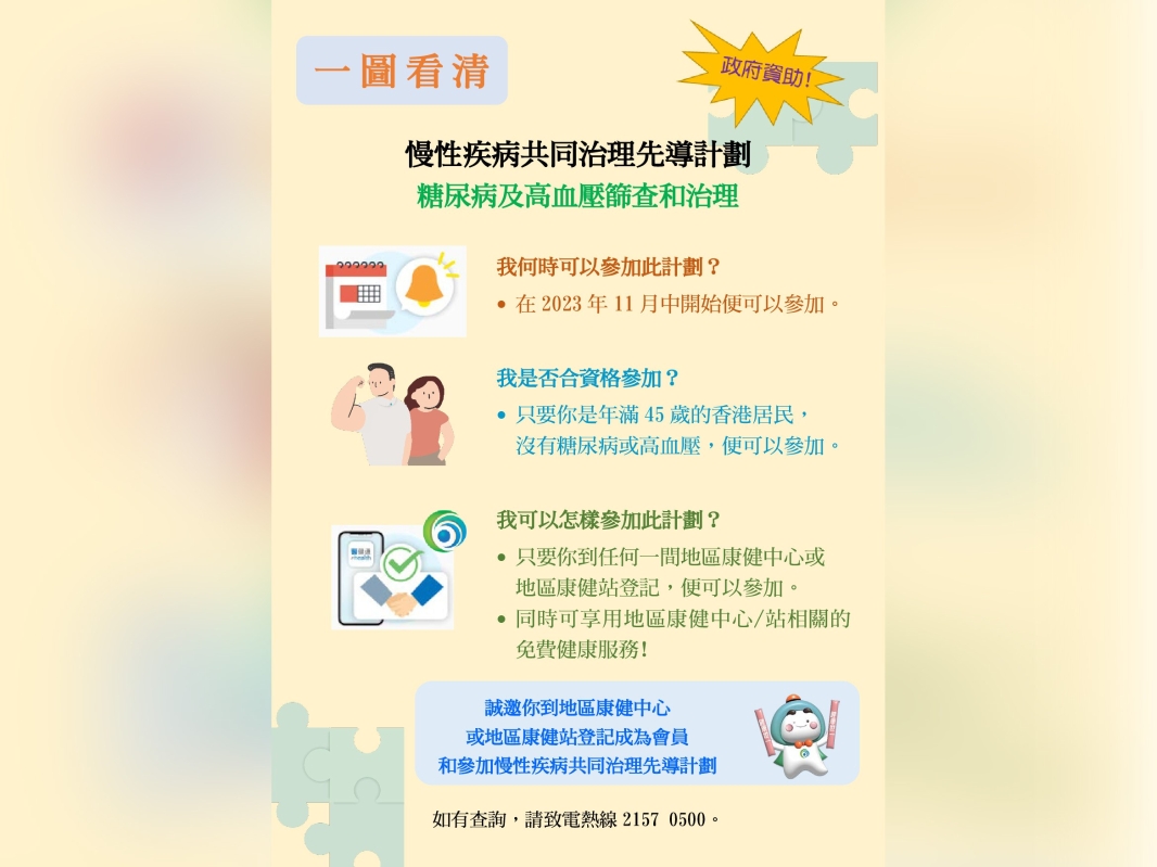 健康通|“慢性疾病共同治理先導計劃”11·13起推出分享到: