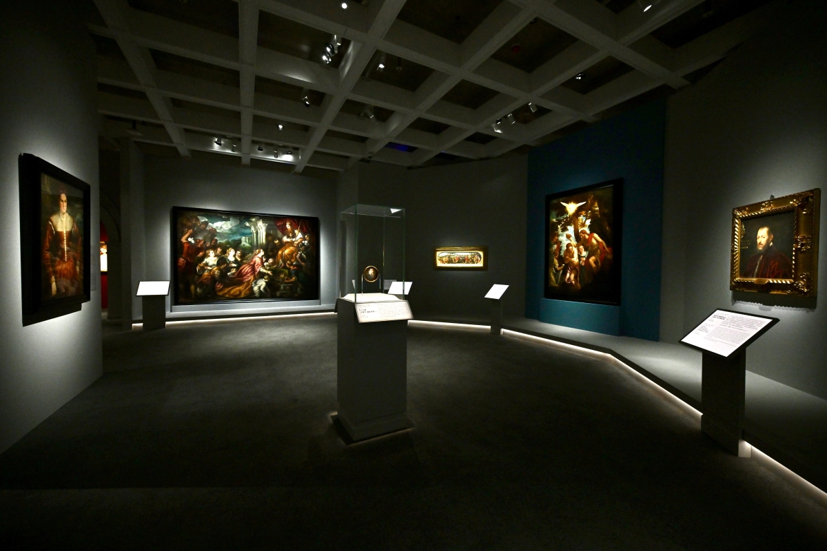 展廳一隅。(香港中通社記者 黃璇攝) 展廳的六個部分之“宛如劇場的威尼斯”主要聚焦當時威尼斯的一眾顯赫人物;“威尼斯女神”匯聚了以女性為主題的畫作;“騎士、藝術家和兒童肖像畫”之展品主要是畫家獲委託繪製的私人肖像畫;“神話與古典”展出的畫作則描繪了古代歷史和神話故事;“戰士與戰場”探討提香和其他威尼斯畫派藝術家所描繪的歷史題材、官員肖像和戰爭場面等;“大自然與日常生活的描繪”涵蓋眾多畫家如何將自然風光、日常感受融入畫作,展示對油彩的準確掌握。 香港藝術館同時也邀請了香港本地藝術家梁志和與陳鈞樂,他們從威尼斯畫派作品中汲取靈感進行藝術創作,以21世紀香港藝術家的獨特視角,與16世紀意大利文藝復興大師展開一場跨越時空的藝術對話。 【編輯:黃璇】