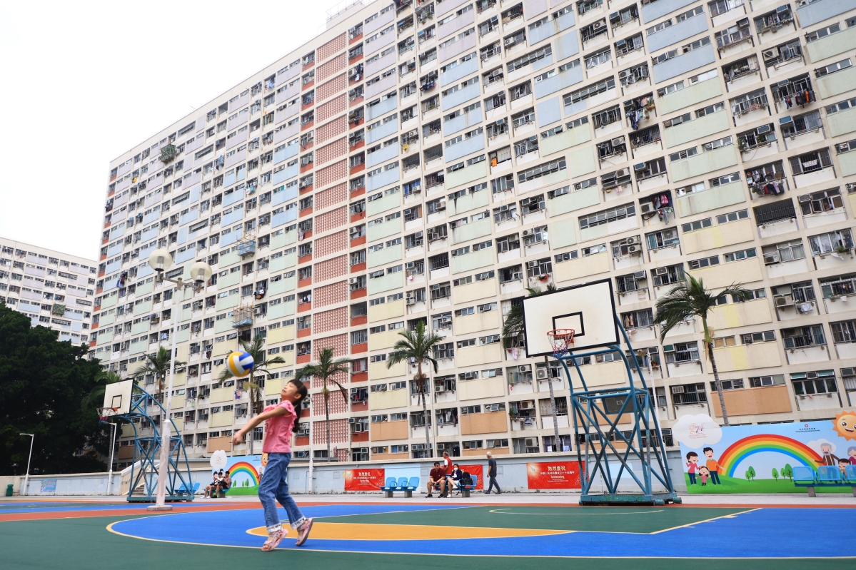 香港新聞網11月8日電(記者 許其皓)11月8日,香港彩虹邨籃球場,大批公眾拍照打卡。彩虹邨是香港早期興建之公共屋邨之一,佔地逾5.1公頃,位於九龍黃大仙區牛池灣,由香港屋宇建設委員會發展,巴馬丹拿建築及工程師有限公司設計,融入包浩斯風格元素,因為設計獨特,彩虹邨榮獲了香港首個建築獎項——1965年香港建築師學會年度最高榮譽“銀牌獎”,憑七彩顏色的招牌外牆及球場,近年成為香港具地標性打卡勝地。 特區政府在去年施政報告提出,要額外挑選一個舊式公共屋邨展開重建研究計劃。近期有消息指房委會已選定將樓齡逾60年的彩虹邨重建,7400戶需分批遷出,預計會分期清拆,整個重建工程需時20年,新建成的樓宇高達40層,最快今年底公布詳情。