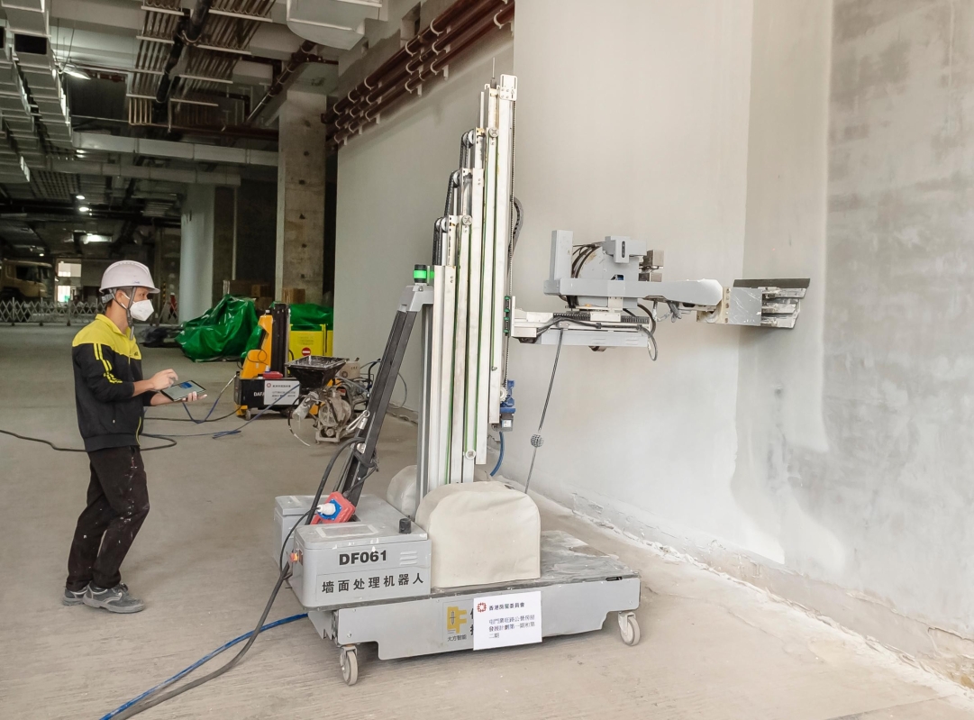 圖為“建築三一萬能俠”大號多功能建築機械人示範批蕩工序。香港特區政府新聞處圖片 房委會自2020年起,在評審新建築合約標書時,加入使用建築機械人新規定。現時已有不同建築機械人在公營房屋項目施工,加強工地安全,提升生產力及建屋質素。 結構工程師梁偉愷表示,“建築三一萬能俠”可執行三種不同工序,利用激光感知周圍場景,並透過人工智能視覺感知天花、管線及其他障礙物體,經過運算從而規劃最佳路徑施工,提高施工效率。 據介紹,“建築三一萬能俠”可一邊進行打磨,一邊將粉塵收集,保持工地環境整潔,操作員還可以遠距離在地面操作機械人,減少高空工作,以及長時間接觸噴漆,加強工地安全,保障工人健康。而且使用建築機械人更可以準確計算需要使用的建築物料,減少浪費,令施工更環保。 在簡介會上,房委會工程團隊在工地展示兩款“建築三一萬能俠”,大號“建築三一萬能俠”適合應用在樓層較高的地方,例如停車場或巴士站;小號“建築三一萬能俠”則適合在分層單位工作。 房委會工程團隊還在工地現場進行示範,轉換不同工序所需的配件,以執行批蕩、打磨和噴漆三種不同工序,轉換程序只需要數分鐘便可完成。 房屋署創新科技總監姚勛雄說,為應付龐大的公營房屋工程量,以及勞動力老化和短缺的挑戰,房委會一直大力應用創新科技,包括應用多功能建築機器人,彌補部分人手供應缺口,加強工地安全,希望藉此吸引更多新人入行。(完) 【編輯:馬華】