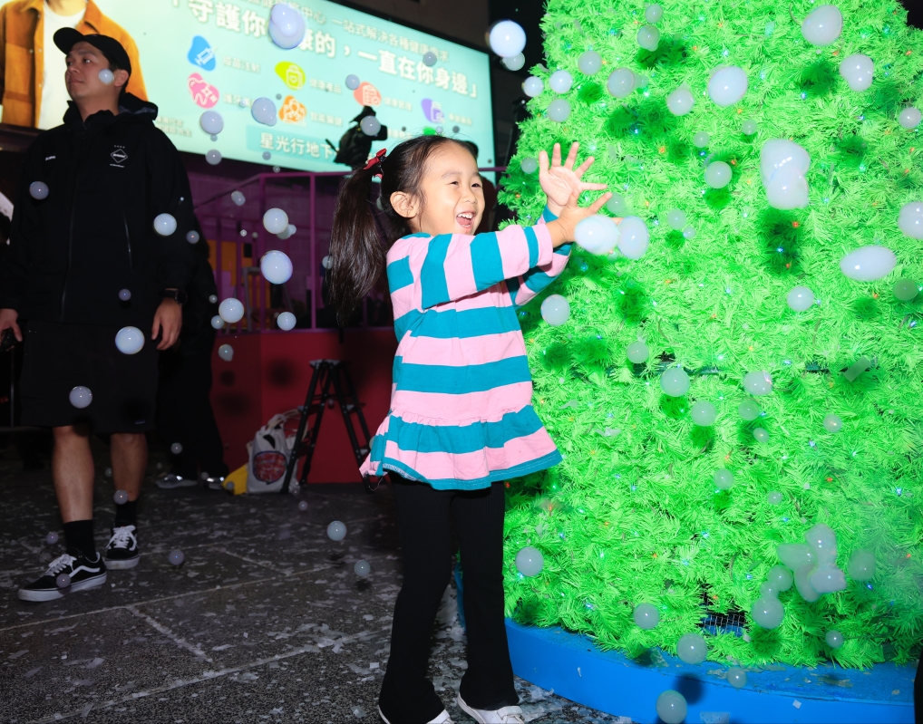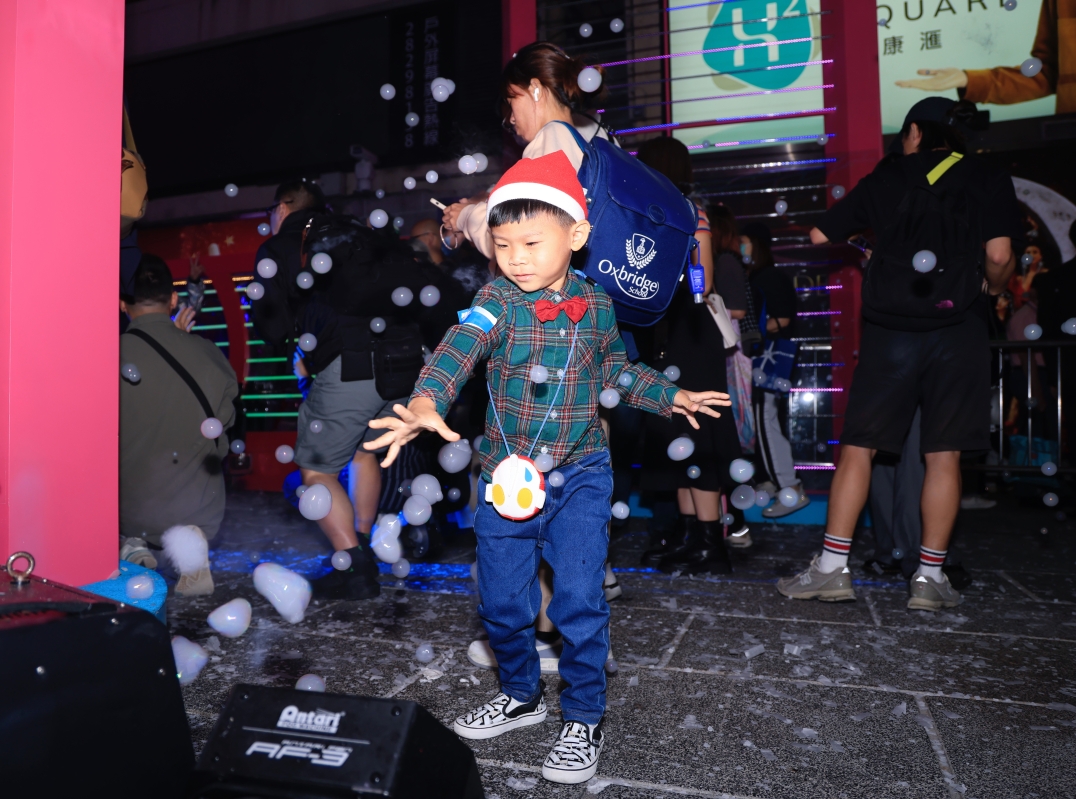 亮燈儀式一刻發放煙火效果及漫天紙碎,營造聖誕飄雪效果
