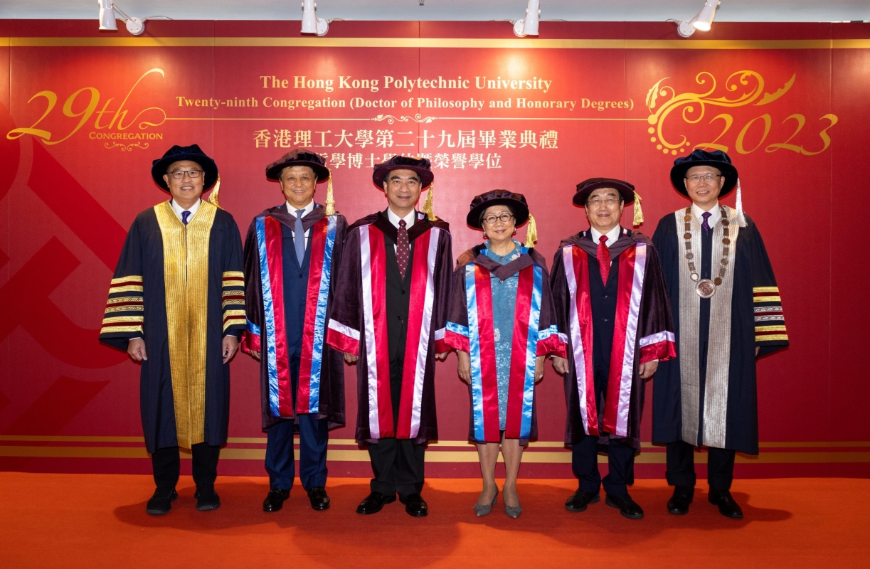 香港新聞網11月27日電 近日,香港理工大學(理大)校董會主席林大輝博士與校長滕錦光教授主持第二十九屆畢業典禮,向五位傑出人士頒授榮譽博士學位,並頒授哲學博士學位予375位應屆畢業生。典禮於理大校園賽馬會綜藝館舉行。 今年獲頒授榮譽博士學位的傑出人士為:香港交易及結算所有限公司主席史美倫;北京大學校長、中國科學院院士龔旗煌;滴灌通集團創始人及主席李小加;前復旦大學校長、中國科學院院士許寧生;廣州醫科大學內科教授、中國工程院院士鍾南山。