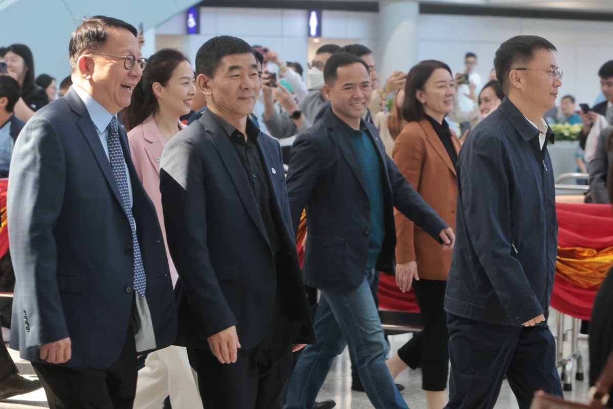 香港新聞網11月28日電(記者 謝光磊 )11月28日中午,載人航天工程代表團抵達香港,開啟對港澳為期6天的訪問。這是自2012年神舟九號載人交會對接任務代表團訪問港澳後,載人航天工程時隔11年又一次組織的訪港澳活動,也是工程進入空間站時代首次赴港澳交流互動。香港特區政府在機場舉行了熱烈的歡迎儀式。中國載人航天工程辦公室副主任、代表團團長林西強,執行空間站建造任務的神舟十二號乘組、神舟十三號乘組、神舟十四號乘組、神舟十五號乘組航天員代表劉伯明、王亞平、陳冬、張陸率先步出機場大廳。香港特區政府政務司司長陳國基、民政及青年事務局局長麥美娟等政府官員到機場迎接。百餘名香港小學生們在現場揮舞著五星紅旗和紫荊花區旗,熱情歡迎代表團的到來。