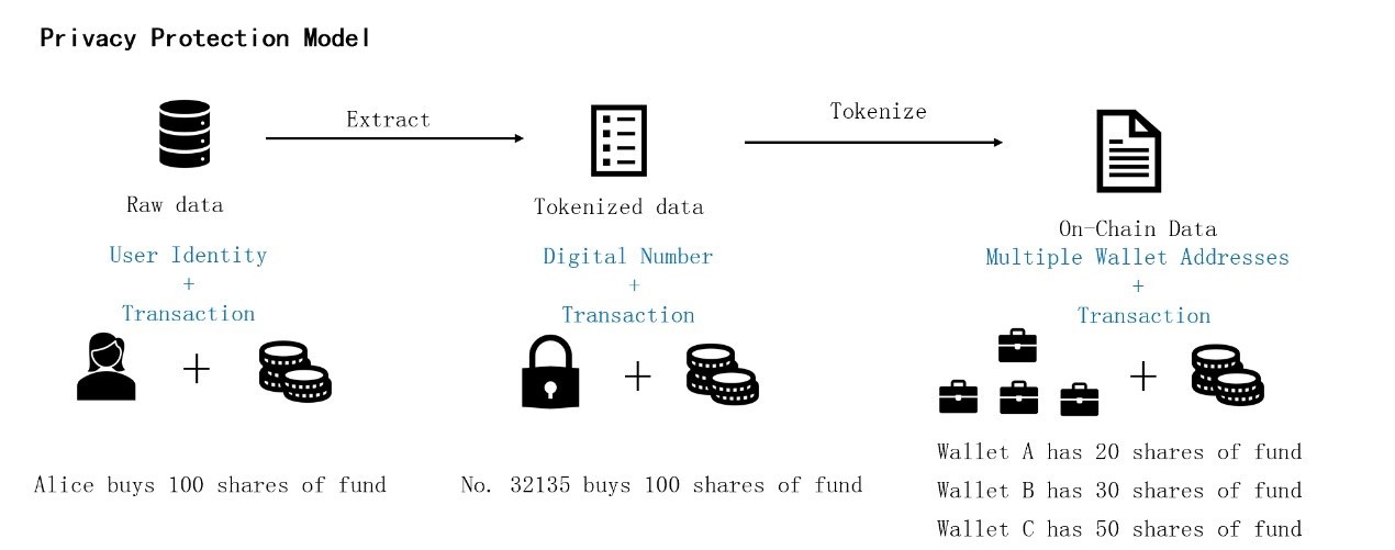圖片來源:嘉實國際。 在隱私保護方面,William介紹本次基金的代幣化安排也建立了新的隱私模型,他指出盡管區塊鏈具有匿名性,但外界往往可以通過一些蛛絲馬跡將客戶身份信息與某錢包地址關聯起來,造成隱私暴露。比如外界知道某人持有1000份額的基金,而鏈上只有唯一一個錢包中有1000個代幣,由此便可建立身份與錢包的聯繫,造成隱私洩露。為此,嘉實國際採用“一對多”的方式,將一個投資者持有的基金份額隨機分配到多個錢包中,以此強化對投資者隱私的保護。