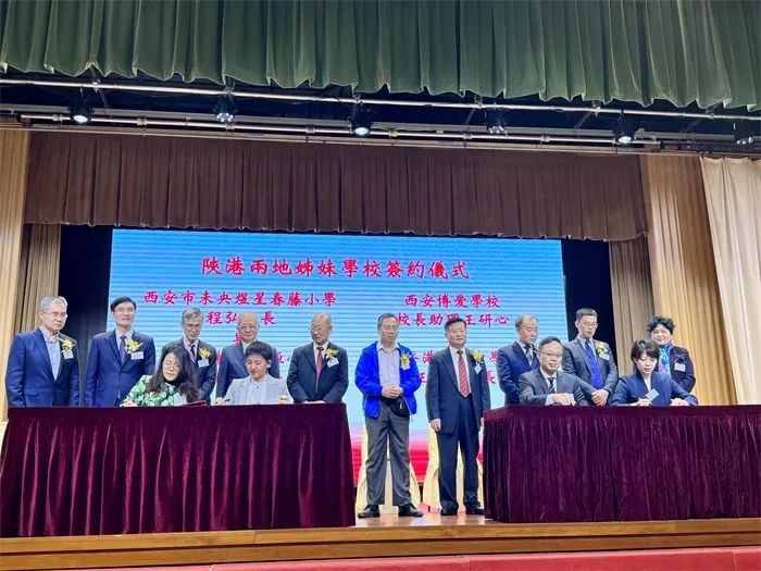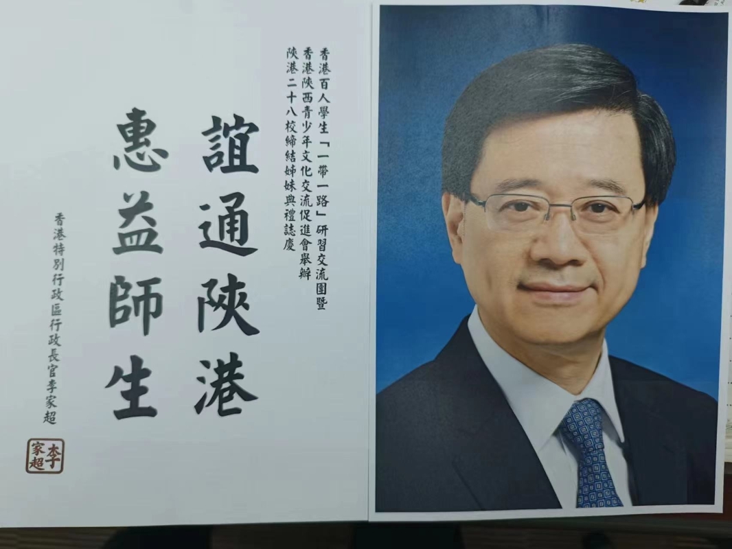 李家超題詞。 香港陝西青少年文化交流促進會長期以來持續關注陝港兩地學生交流,成立至今,已傾力打造了多項品牌研學活動, “百人學生一帶一路研學營”系列、“香港青少年絲路行·探尋文化根脈之‘影’像長安系列”,“魅力陝西,問學長安”等系列活動,在促進會的聯絡對接、陝港兩地多個單位部門的協調下,至今陝港兩地近70所學校已建立了姊妹校關係,兩地學校紛紛開展了系列文化交流活動,相信活動的開展爲推動兩地歷史文化交流,培養孩子們的愛國主義情懷,發揚傳承中華傳統文化起到積極的推動作用。 活動期間,香港陝西青少年文化交流促進會與陝西省宋慶齡基金會簽署合作備忘錄,雙方將在後期持續組織陝港兩地學生開展科技文化藝術等交流活動。 西安市未央煜星春藤小學與香港青松侯寶垣小學、西安博愛學校與香港樂道中學分別簽訂締結姊妹學校協議書。