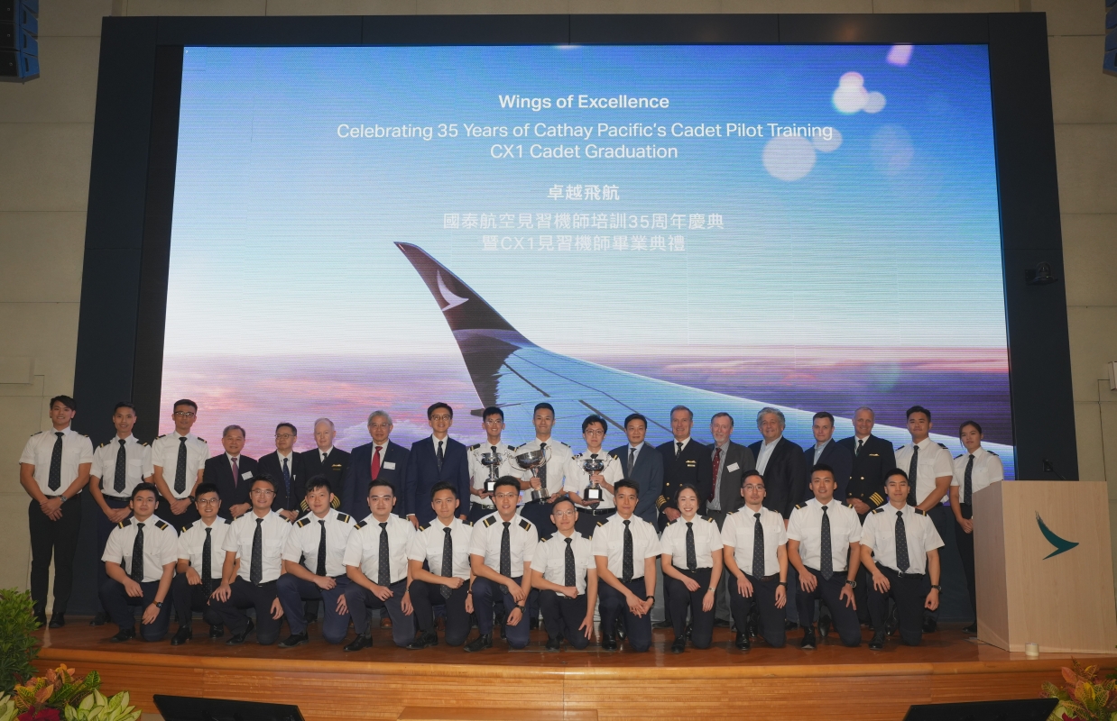 香港新聞網12月6日電 香港國泰航空5日舉辦見習機師培訓計劃35周年慶典,繼續致力培育新一代航空專業人才。活動同時見證國泰航空、香港理工大學及我們的飛行訓練新夥伴AeroGuard合辦的綜合培訓課程首屆學員順利畢業。21名完成訓練的畢業生已加入國泰航空擔任二副機長。 國泰集團行政總裁林紹波歡迎署理運輸及物流局局長廖振新先生親臨國泰城擔任畢業典禮的主禮嘉賓。民航處飛行標準總監黃景輝機長及理大工程學院院長文效忠教授亦有出席。