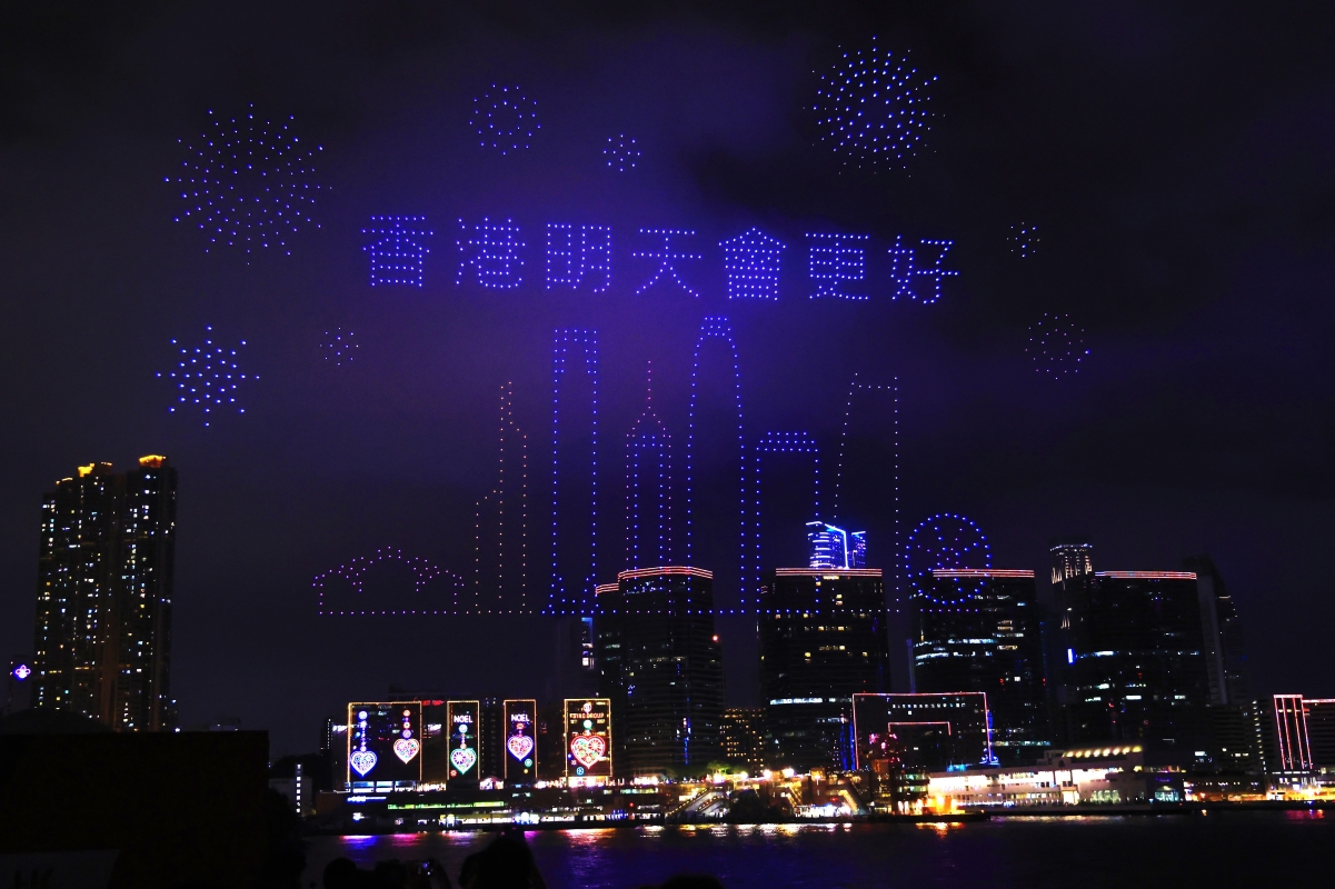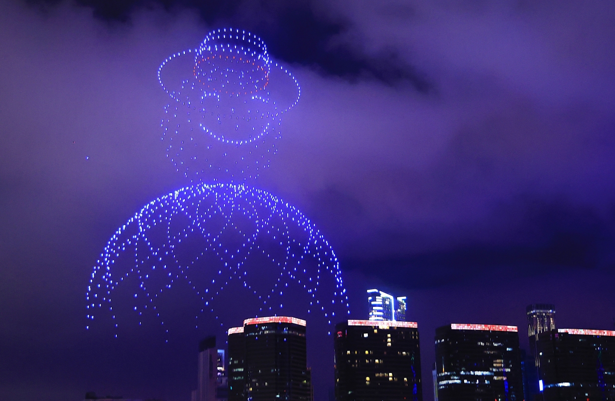 維港夜空上演無人機匯演