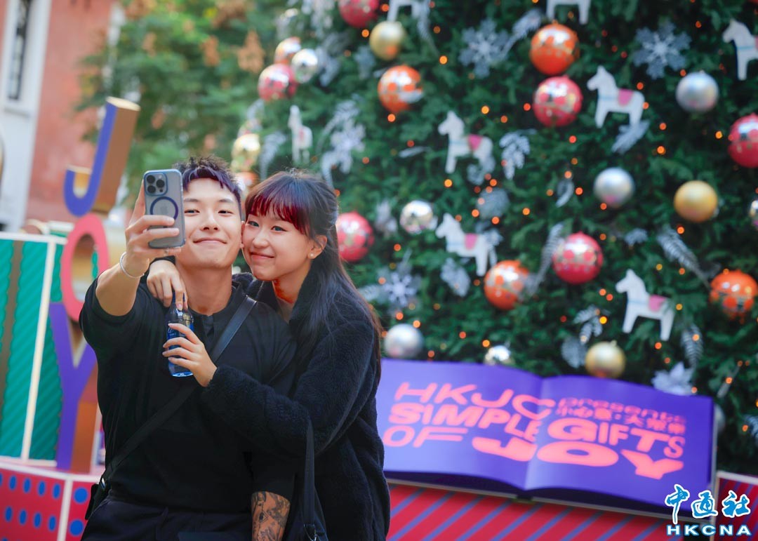 聖誕將至,屹立於香港大館檢閱廣場12米高的大型戶外聖誕樹成為大館的焦點,耀眼精美的聖誕裝飾散發濃厚節日氣氛,吸引眾多市民和遊人來打卡。 (香港中通社記者 曹文毓攝)