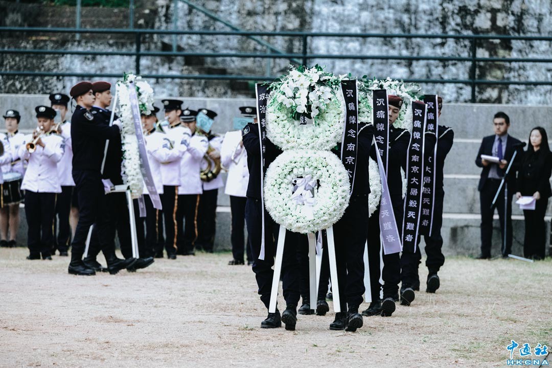 12月13日為南京大屠殺死難者國家公祭日,澳門特區政府於當日上午九時在路環保安部隊高等學校操場舉行公祭悼念儀式。行政長官賀一誠,全國政協副主席何厚鏵,澳門中聯辦主任鄭新聰,外交部駐澳特派員劉顯法,解放軍駐澳部隊司令員于長江、政治委員林慶華,以及本澳主要官員、社會各界人士和澳門培正中學師生逾三百人出席公祭悼念儀式。 香港中通社圖片