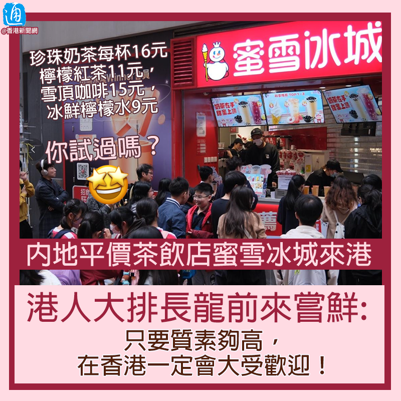 內地平價茶飲店蜜雪冰城來港,港人大排長龍分享到: