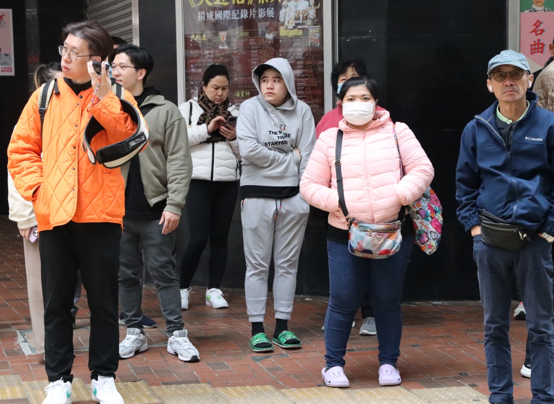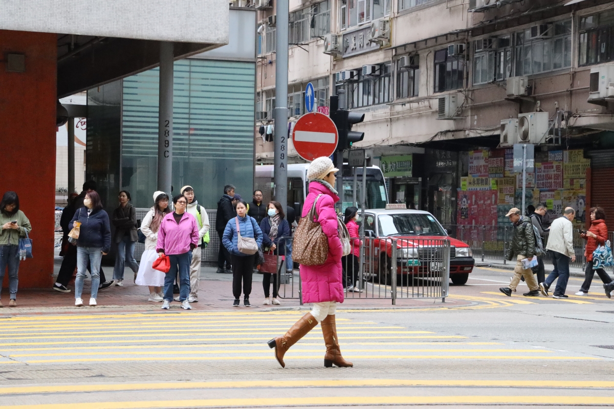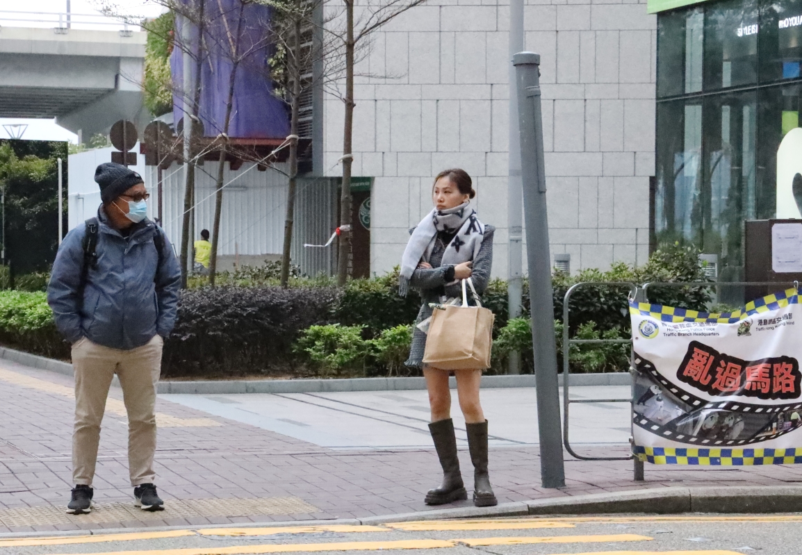 香港市區寒冷市民穿上禦寒服飾出行 【編輯:洪少葵】