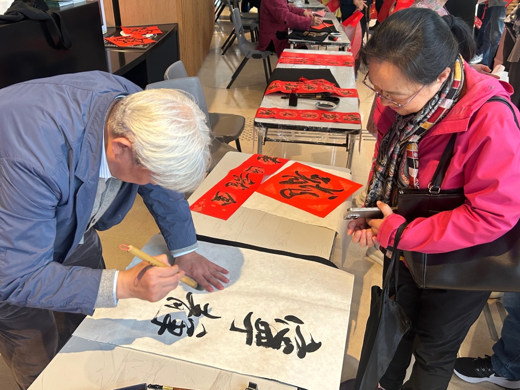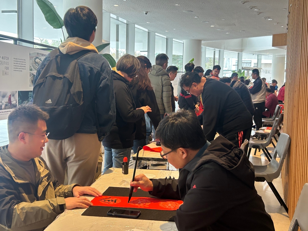 香港新聞網1月26日電 (記者 徐嘉儀)辰龍新春將至,為弘揚中國傳統文化,香港科技大學26日邀請近20位知名中國書法家,齊聚校園的逸夫演藝中心潑墨揮毫,與百多名科大師生一同提前賀新歲。是次“金龍迎春快閃活動”由科大、中央廣播電視總台原創品牌“總台文創”與中國書法大廈聯合舉辦,屬香港篇的重要節目之一。