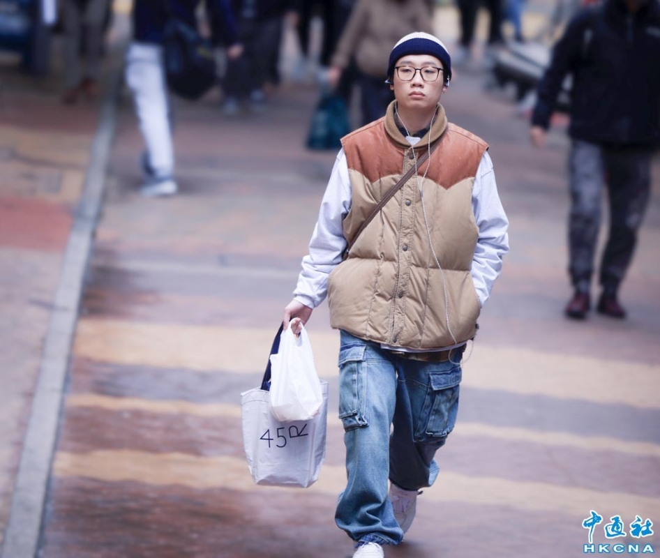 受強烈冬季季候風及廣闊雲雨帶影響,香港23日清晨天氣嚴寒,市區氣溫下降至6度左右,新界再低兩三度,其中打鼓嶺和荃灣可觀只有4度。大帽山更錄得零下2.2度,道路來回方向全線已封閉。(香港中通社記者 曹文毓攝)