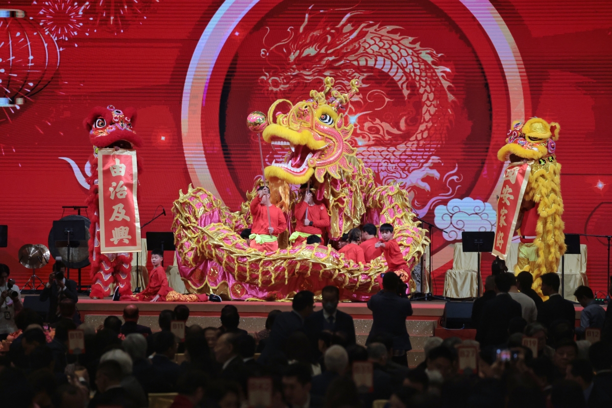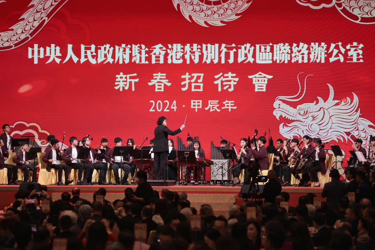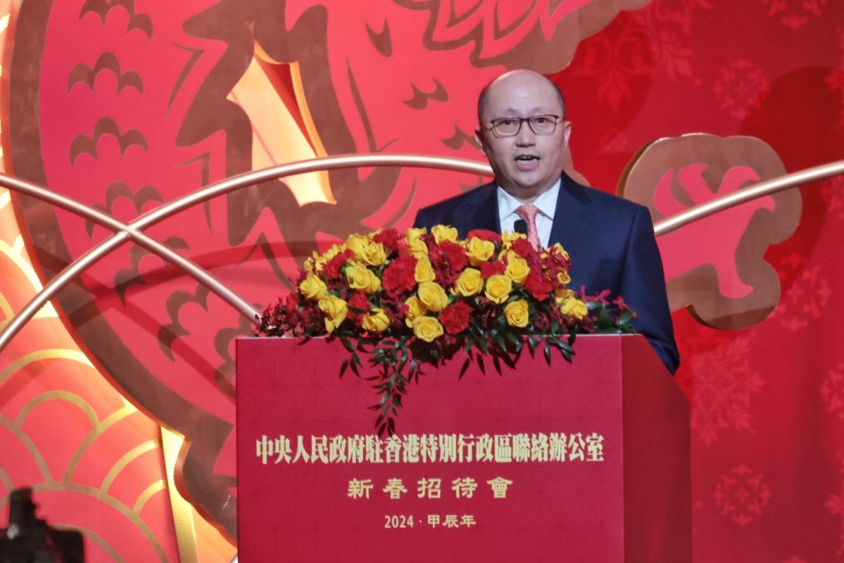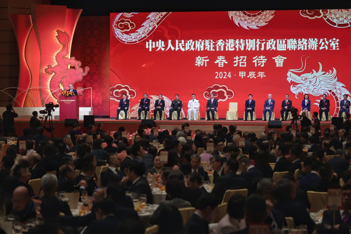 香港新聞網1月30日電(記者謝光磊)1月30日下午,中央政府駐港聯絡辦2024年新春招待會在香港會議展覽中心隆重舉行。中央政府駐港聯絡辦主任鄭雁雄、香港特區行政長官李家超發表致辭,全國政協副主席梁振英等嘉賓出席。鄭雁雄當天出席香港中聯辦2024年新春招待會致辭時表示,龍的形象,象徵中華民族團結統一的民族精神。古往今來,中國人總是把金甌無缺、山河無恙作為共同追求。香港能夠平穩過渡重回祖國懷抱,離不開這種追求;隨著香港國安法實施和“愛國者治港”原則落實,香港煥發出“國安家好”新景象,彰顯了這種追求;下一步辦好涉國家安全重大案件,完成基本法23條本地立法,更體現這種追求。 新春招待會上,培僑中學的學生、杭州亞運健兒代表,與中央政府駐港聯絡辦、駐港國家安全公署、外交部駐港特派員公署、解放軍駐港部隊等中央駐港機構的員工代表,共同帶來合唱《灣區是故鄉》。