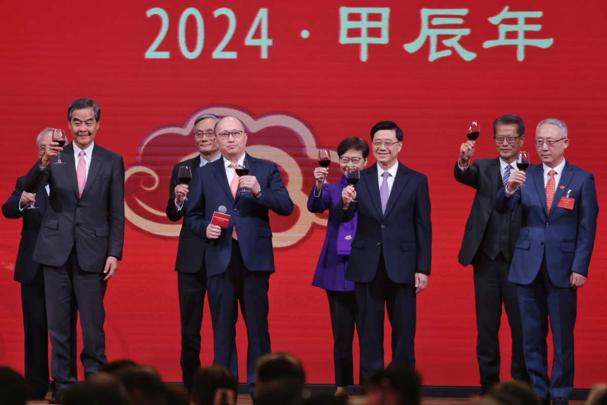 香港特區行政長官李家超致辭時介紹特區政府在龍年的三大重點工作,包括盡快完成基本法第23條立法;全力推動經濟發展,更好融入國家發展大局,提升香港的國際競爭力;以及持續不斷改善市民生活,把關愛共融落到實處