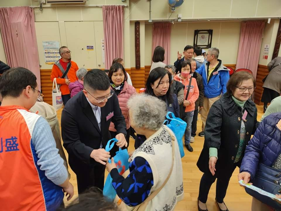 行政長官李家超最近在今年施政報告中強調“居家安老為本,院舍照顧為後援”的安老方針,柯創盛和鄭強峰議員響應其號召,聯繫各善者人翁和慈善團體,積極落區舉辦關愛行動。關心長者,貼心交流,為長者打造“關愛共融”的社區環境。 是次活動,柯創盛議員、陳少洪常務副會長等向翠屏社區的長者送上了滿載祝福的新春福袋,共計派出五百份,福袋禮物包括大米 1 公斤,食油一支(300ml),麵線一包。受惠長者紛紛表示十分開心和滿足,關愛活動讓他們切身感受到了社區大家庭的溫暖。