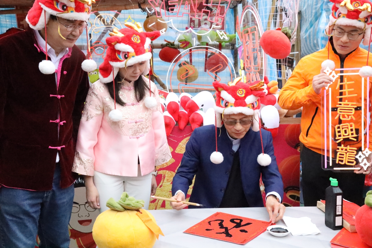 香港新聞網2月4日電(記者洪少葵)為響應和支持香港特區政府推出的“夜繽紛”系列活動,鼓勵香港市民留港消費,振興香港夜經濟,立法會梁熙議員特別在維園年宵市場投下攤位售買賀年裝飾物,在年宵期間將邀請特別嘉賓到場支持,同時,邀請不同的名人和嘉賓即場書寫揮春贈予市民。2月4日,名為“東主有熙好繽紛”開幕式在維園年宵市場舉行,梁熙與一眾民建聯議員丁江浩、洪志傑等嘉賓出席。民建聯創會主席、前立法會主席曾鈺成到場支持並即席揮毫,為活動增添喜慶。 農曆年宵市場當天起在15個地點舉行,乾貨及快餐攤位今年復辦。全港15個年宵市場共設約1500個濕貨、乾貨、快餐和主題攤位,會開放到大年初一早上7時。
