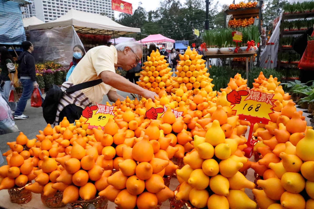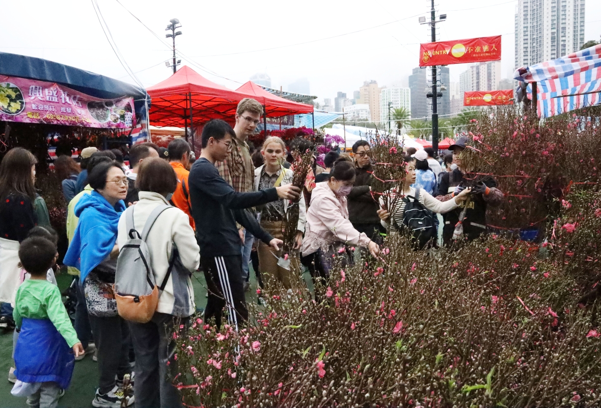 香港維園熱鬧非凡,年花攤檔生意興隆