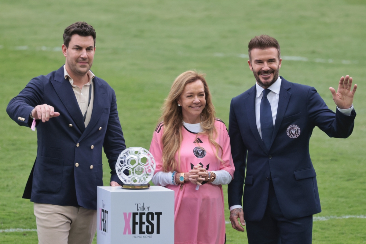 國際邁阿密班主之一的貝克漢姆(右),在賽前表演環節擔任主禮嘉賓