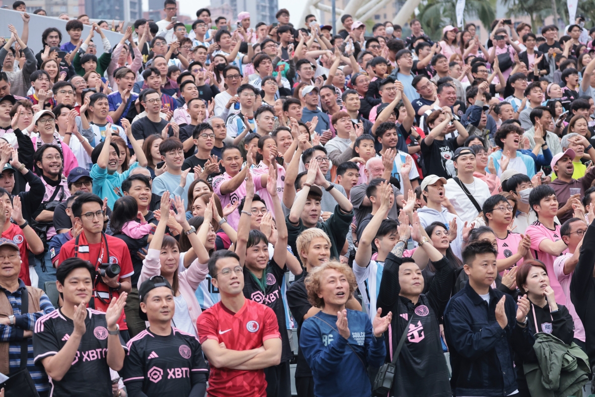 香港新聞網2月4日電(記者 謝光磊 攝) 2月4日,阿根廷球王梅西率領的國際邁阿密隊下午4點在香港大球場與港隊進行友誼賽,全場座無虛席。結果,國際邁阿密4∶1贏港隊,著名球星梅西、蘇亞雷斯全程未上場。國際邁阿密班主之一的貝克漢姆,在賽前表演環節擔任主禮嘉賓。