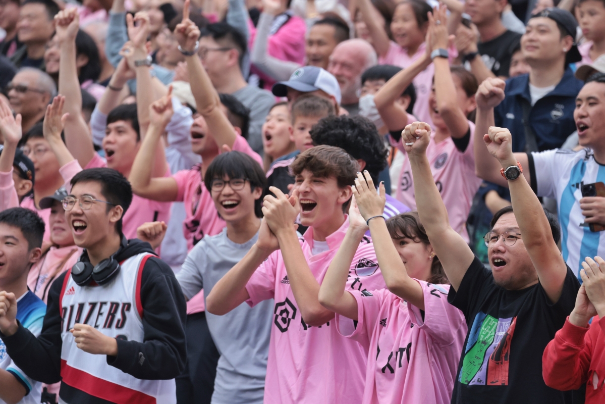 阿根廷球王梅西率領的國際邁阿密隊在香港大球場與港隊進行友誼賽,全場座無虛席