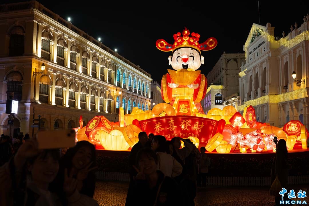 農曆新年臨近,澳門龍年燈飾紛紛亮相街頭,新馬路巨型賀歲燈飾亦已點亮,吸引不少旅客前往觀看,感受春節氣氛。香港中通社圖片
