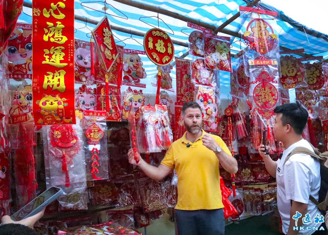 2月4日,香港維園熱鬧非凡,大批市民遊客在維園年宵花市開幕當天入場選購年貨和年花。今年共有300多個攤位,增設主題攤位售賣賀年食品、揮春、年畫、賀年用品和裝飾物。當天起至10日,全港共有15個年宵花市地點,共設約1500個濕貨、乾貨、快餐和主題攤位,會開放到大年初一早上7時。(香港中通社記者 洪少葵攝)