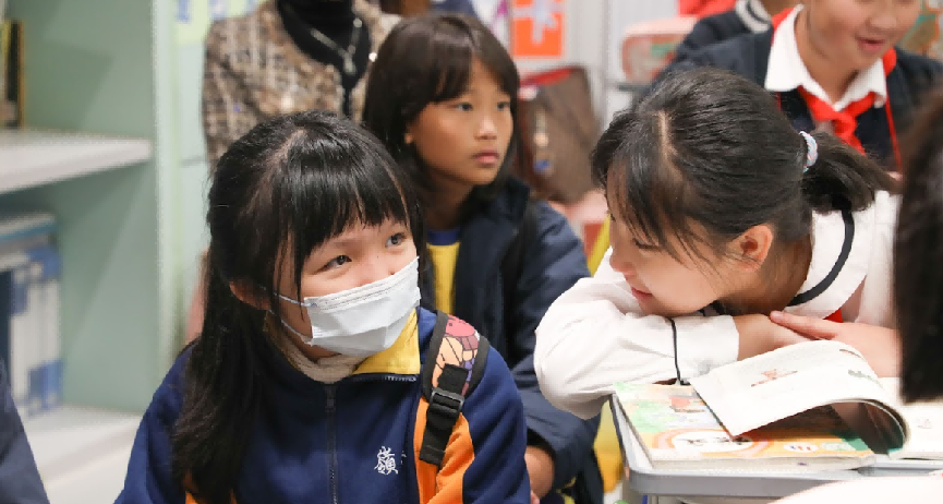學生於工業展覽館進行學習。 通過這次工業展覽館和改革開放展覽館的參觀學習,學生們體驗到深圳作為改革開放的排頭兵所取得的輝煌成果,同时亦為祖國擁有如此豐富多彩的文化而感到自豪,並認識到保護和傳承文化的重要性。來自香港教育工作者聯會黃楚標中學的區老師指出:“這個深圳一日的考察團讓我了解到廣東改革的輝煌成就。此行讓我見證國家加速邁向全球,實在不禁為自己身為中國人而感到驕傲。” 促進學校交流,加深兩地情誼 大灣區交流計劃還特別安排了三次深港學校交流活動,分別是香港荃灣商會學校與深圳市寶安區實驗學校(集團)海旺學校、香港打鼓嶺嶺英公立學校與深圳市福田區紅嶺實驗小學、香港教育工作者聯會黃楚標中學和深圳市寶安中學(集團)海天學校,他們各自進行了深入的交流互動。 在交流過程中,兩地學生們一同坐在教室裡,共同聆聽老師的講解,互相探討,分享著彼此的學習心得和看法。通過這種交流,兩地學生對彼此學習方式和思維模式有更進一步的認識。