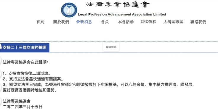 香港法律專業人員協會:全力支持23條盡快立法分享到: