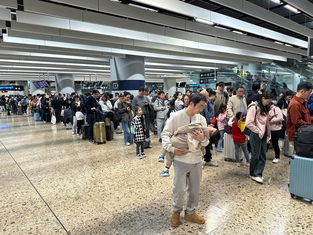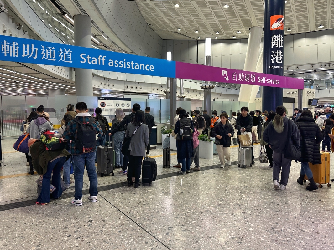 香港西九龍站人潮湧湧,大批旅客進出但繁忙有序