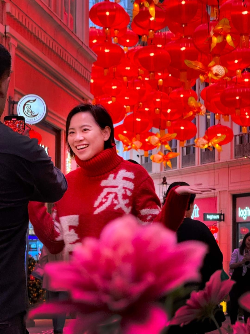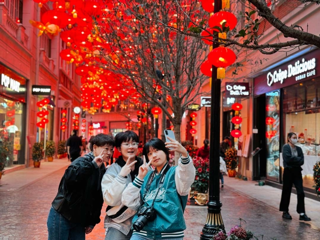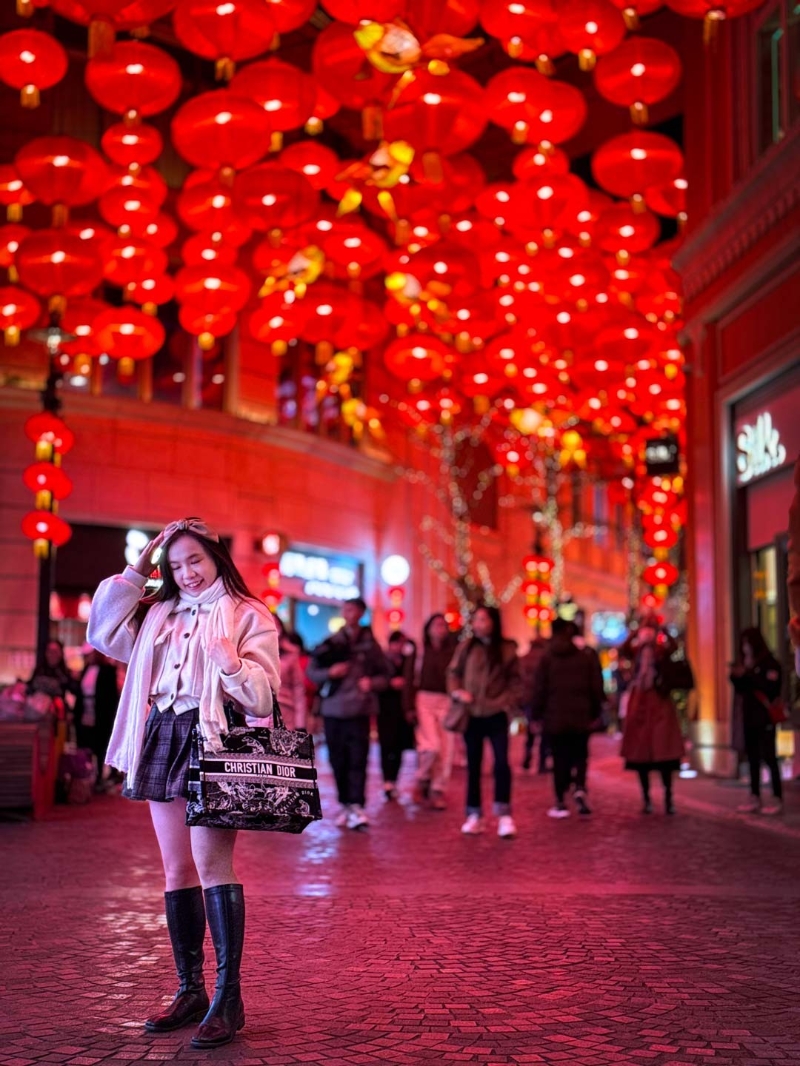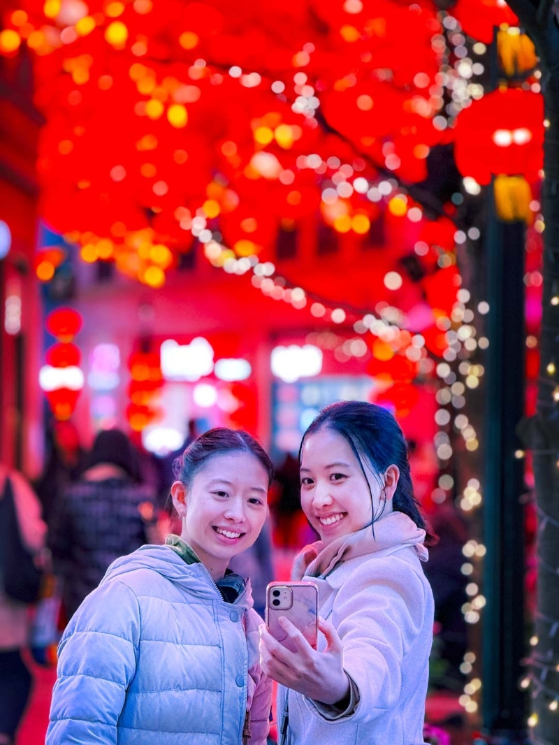 市民在燈籠海下歡喜拍照留念
