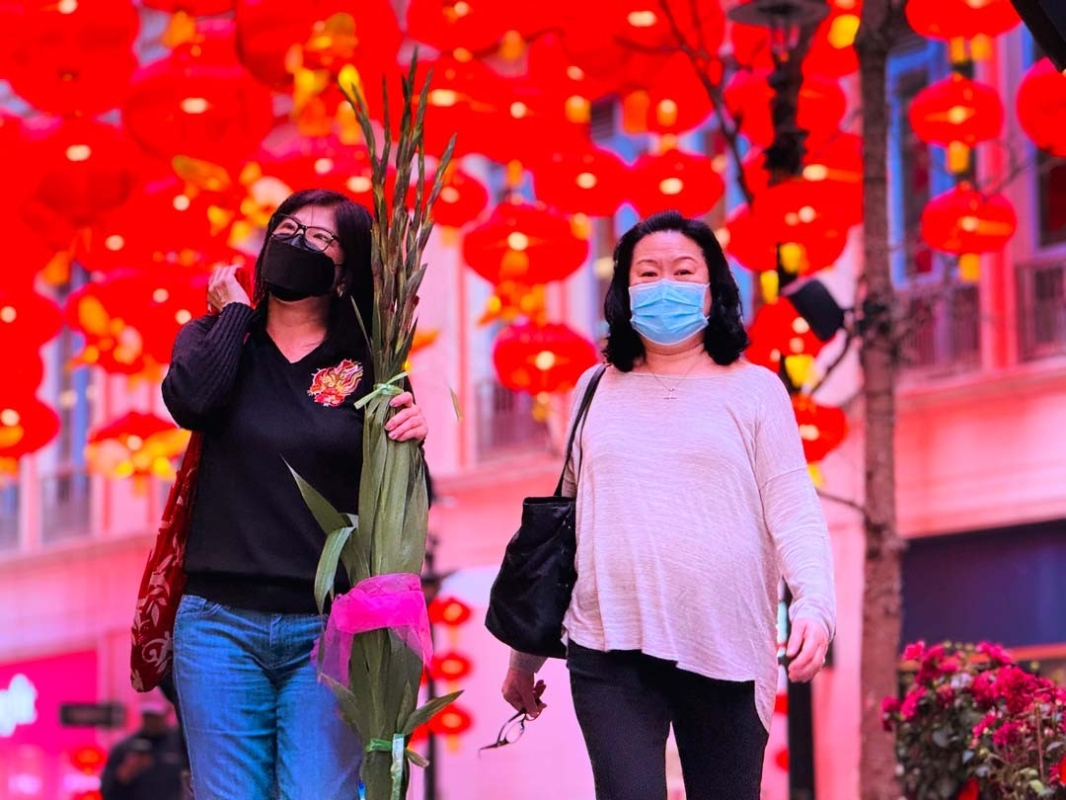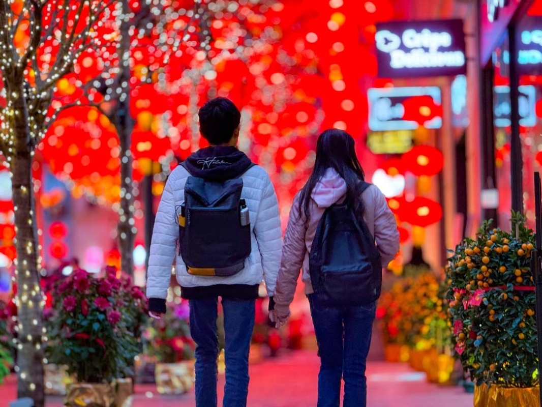 情侶牽手在燈籠海下走過,浪漫溫馨