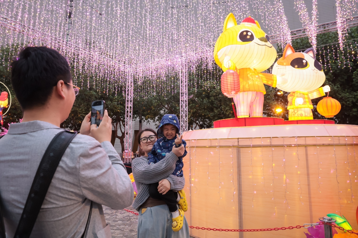 市民在文化中心露天廣場逛彩燈猜燈謎